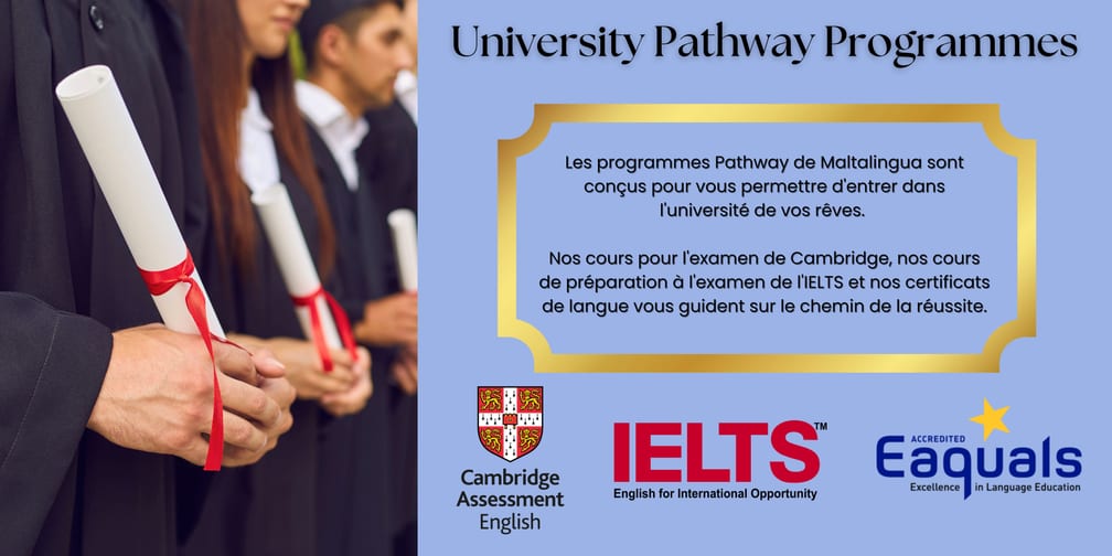 Maltalingua propose une gamme de cours d'anglais général, vous permettant d'obtenir un certificat officiel attestant de votre niveau. Nos cours vont des niveaux A1 à C1, ce qui signifie que vous pouvez obtenir un certificat du niveau débutant au niveau avancé.
